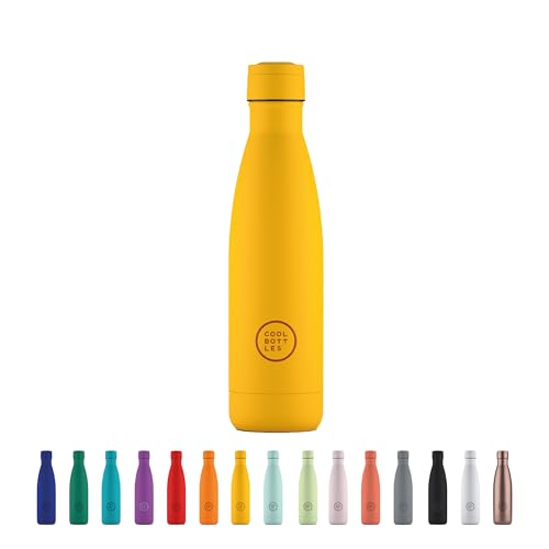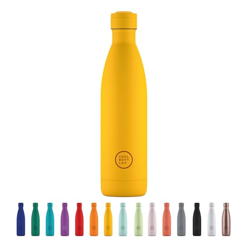 Cool Bottles - Vattenflaska i rostfritt stål - 500 ml - Vivid Yellow - 26,5 x 7 cm - Lufttät termisk flaska - Kalla drycker 36 timmar och varma drycker 18 timmar - Triple-Cool Technology - BPA Free