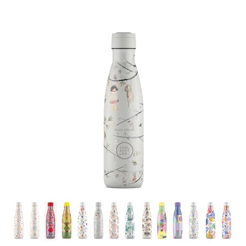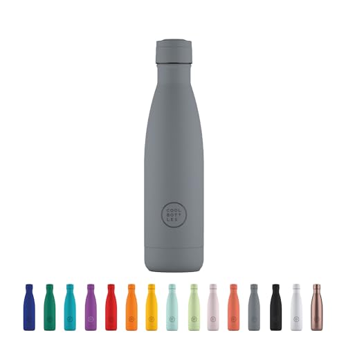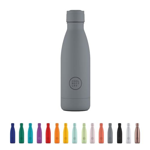 Cool Bottles - Vattenflaska i rostfritt stål - 500 ml - Pastel Grey - 26,5 x 7 cm - Lufttät termisk flaska - Kalla drycker 36 timmar och varma drycker 18 timmar - Triple-Cool Technology - BPA Free