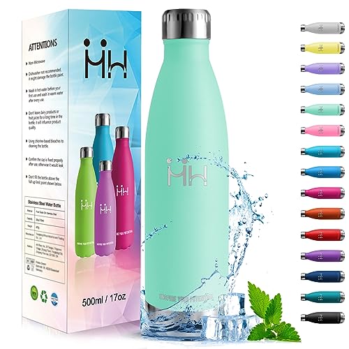 TIROBA Vattenflaska i rostfritt stål, 500 ml, vakuumisolerad, läckagesäker termos flaska, isolerad flaska, BPA-fri, 24 timmar kall och 12 timmar varm glansig mintgrön