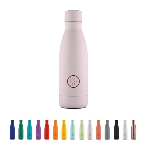 Cool Bottles - Vattenflaska i rostfritt stål - 350 ml - Pastel Pink - 23,5 x 7 cm - Lufttät termisk flaska - Kalla drycker 36 H och varma drycker 18 H - Triple-Cool Technology - BPA Free