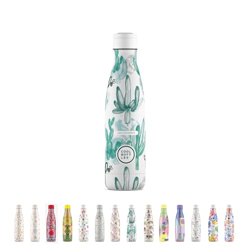 Cool Bottles Termisk flaska - 500 ml - Watercolor Cactus x Lara Costafreda - Vattenflaska i rostfritt stål - 36 timmar varma och kalla drycker 18 timmar - 3D-utskrift