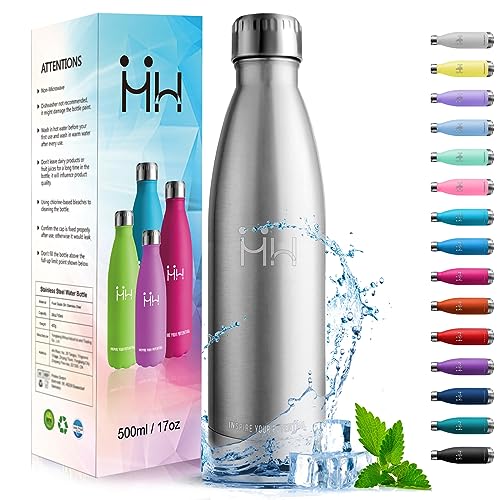 HoneyHolly Termisk flaska, 500ml vattenflaska i rostfritt stål, gymflaska utan förlust, och BPA, termisk flaska för skola, sport, arbete – varma drycker i 12 timmar och kalla drycker
