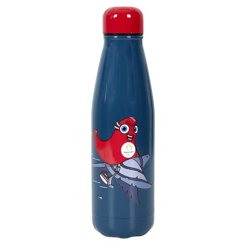PARIS 2024, Para isolerad flaska 50 cl duva maskot M12, officiell licensierad produkt, återanvändbar vattenflaska i rostfritt stål, termos, för idrott, skola, resor