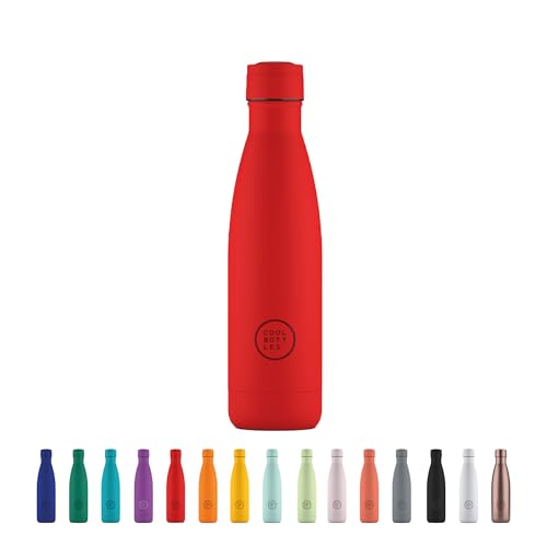 Cool Bottles - Vattenflaska i rostfritt stål - 500 ml - Vivid Red - 26,5 x 7 cm - Lufttät termisk flaska - Kalla drycker 36 timmar och varma drycker 18 timmar - Triple-Cool Technology - BPA Free