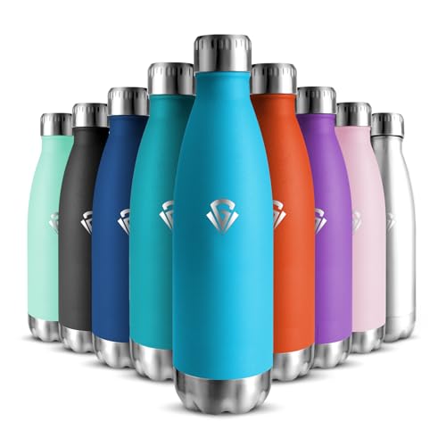 TIROBA Vattenflaska i rostfritt stål, 500 ml, vakuumisolerad, läckagesäker termos flaska, isolerad flaska, BPA-fri, 24 timmar kall och 12 timmar varm glansig havsblå