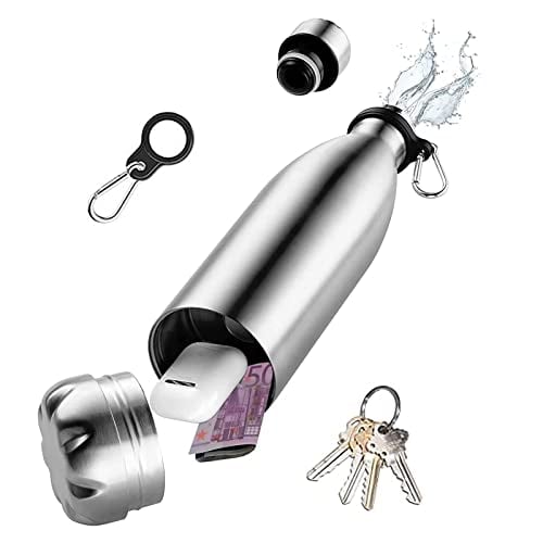 Domemit Avledande säker vattenflaska i rostfritt stål med dolt fack för värdesaker, läckagesäker isolerad flaska för varma och kalla drycker, silver, 730 ml