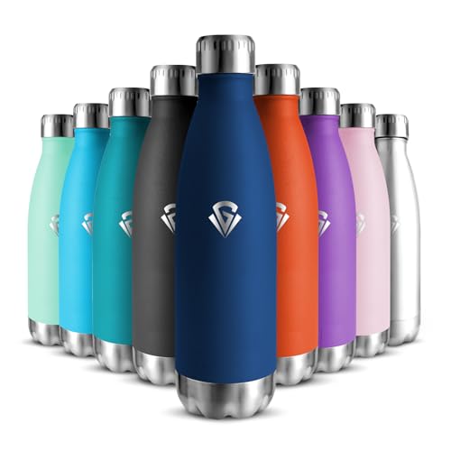 Isolerad flaska i ett stycke – en del återanvändbar vattenflaska i rostfritt stål solig skalle – 12 timmars varm och kall hållning – för sport, resor, daglig användning, 500 ml – BPA-fri – officiell