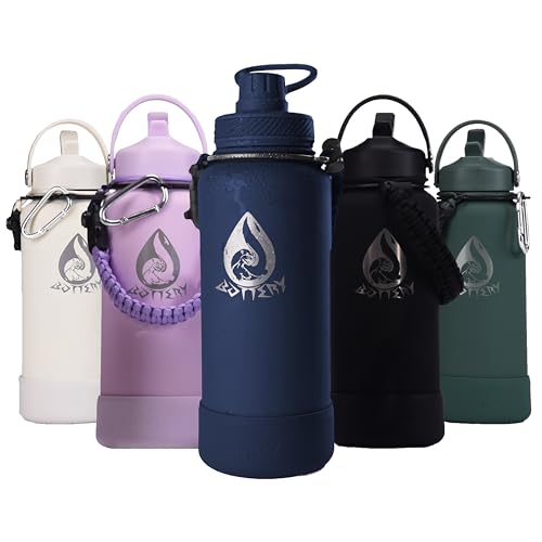 Volhoply 1 200 ml drickflaska i rostfritt stål, två förpackningar, dubbelväggig vakuumisoleradflaska med paracord-handtag, metall vattenflaska, BPA-fri för skola, utomhus (mörk natt, 2