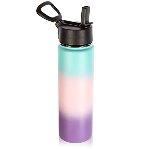 Volhoply 660ml isolerade vattenflaskor med halmlock, sportflaska i rostfritt stål med handtag, dubbelväggig vakuummetall resetermos, återanvändbar vattenflaska för skolan (gradientfärg, 1 set)