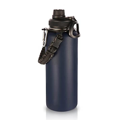 Volhoply 1 200 ml drickflaska i rostfritt stål, dubbelväggig, vakuumisoleradflaska med paracord-handtag, metall, läckagesäker vattenflaska, BPA-fri för sport, skola, utomhus (marinblå,
