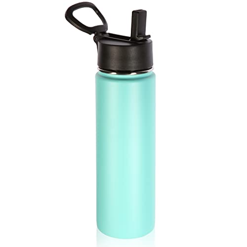 Volhoply 660ml isolerade vattenflaskor med halmlock, sportflaska i rostfritt stål med handtag, dubbelväggig vakuummetall resetermos med bred mun, återanvändbar vattenflaska för skolan (Mint, 1 set)
