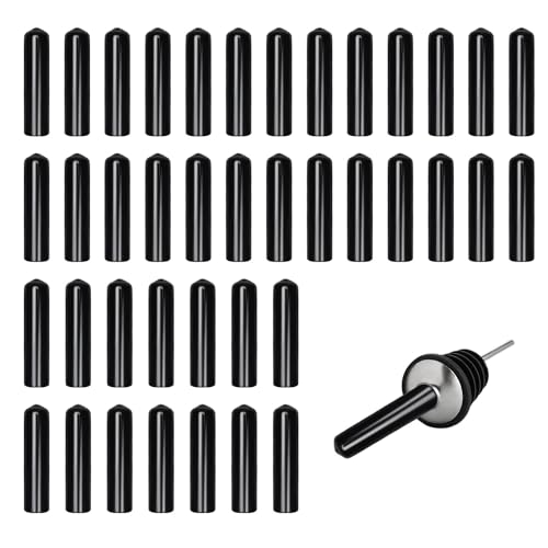 ZEACCT 40 st långa sprit hällpipskydd, gummiflaska dropplock, vinsprit flaska hälllock, sprit hälla lock, sprit hällare pip dammskydd, för barer vinklubbar kaféer kök, svart