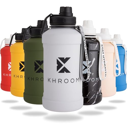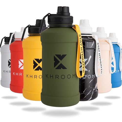 Khroom rostfritt stål vattenflaska 1,3L & 2,2L – lämplig för kolsyrat vatten, läckagesäker, enkelväggig, BPA-fri | metall vattenflaska | 1 Liter gym, fitness och sportflaska grå