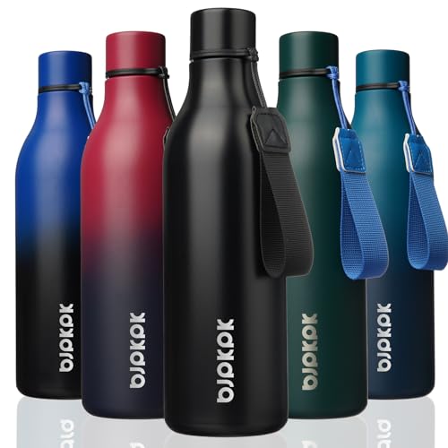 BJPKPK Isolerade vattenflaskor, 25 oz rostfritt stål metall vattenflaska med rem, BPA-fri läckagesäker termos, muggar, flaskor, återanvändbar vattenflaska för sport och resor, svart