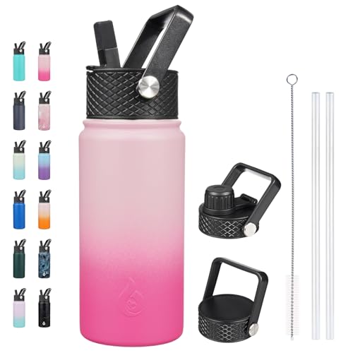 Vikaster Vattenflaska metall, termosflaska 0,5 l, BPA-fri drickflaska, termosflaska med sugrör, drickflaska för skola, sport, cykel, camping, fitness, utomhus