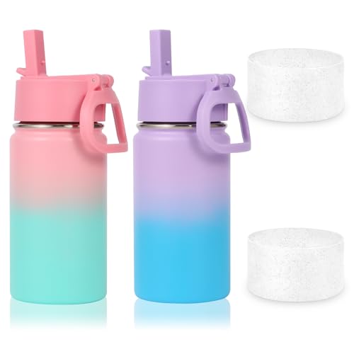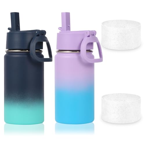 Volhoply Isolerad läckagesäker flaska i rostfritt stål för barn, vattenflaska med vakuum, sugrörslock, silikon, dubbla väggar, BPA-fri, enkel användning för pojkar och flickor, 2-pack (mix, 2)