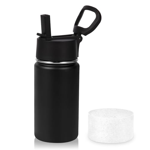Volhoply Isolerad läckagesäker flaska i rostfritt stål för barn, vattenflaska med vakuum, sugrörslock, silikon, dubbla väggar, BPA-fri, enkel användning för pojkar och flickor (svart, 1)