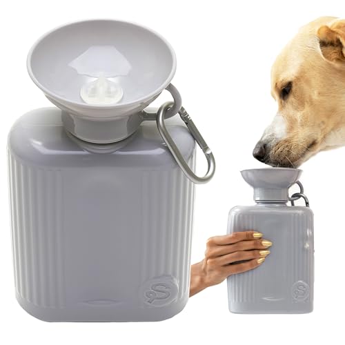 Springer Growler resehund vattenflaska – 1,25 dl stor hundvattenflaska med patenterad läckagesäker design för hundpromenader, vandring och resor, BPA-fria material (grå)