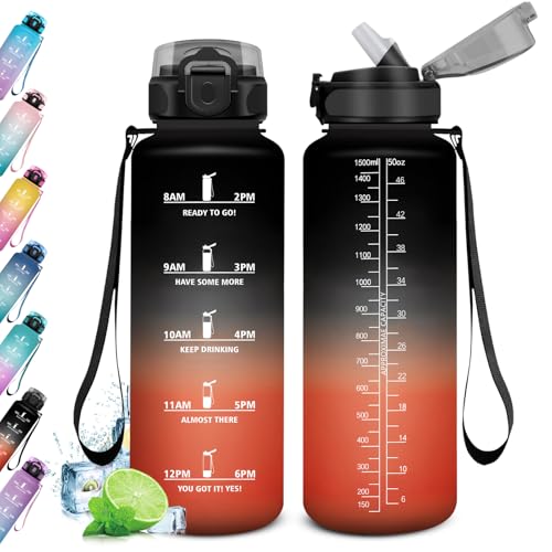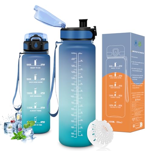 KollyKolla Vattenflaska 1,5 l, drickflaska sport med sugrör, stor vattenflaska läckagesäker, BPA-fri, drickflaska med tidsmarkeringar, sportflaska för vuxna, kontor, fitness