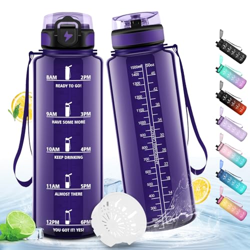 HoneyHolly Sportflaska, 1 500 ml vattentät och återanvändbar, flaska, motivation med flaskfilter, vattenflaska, vattenflaskor för camping, vuxen, gym, yoga, kontor, skola