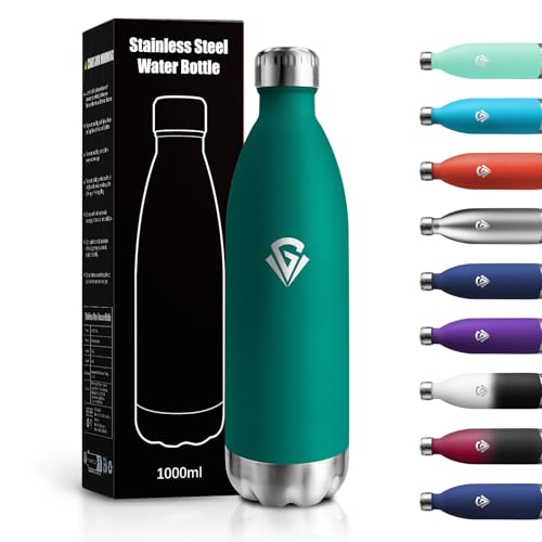 KollyKolla 1 liter Termisk Vattenflaska, Rostfritt stål, Vattenflaska, Termiska Vattenflaskor, Återanvändbara, Termos utan BPA, metallflaska för sport, Vuxen, Skolan, Gym, Resor