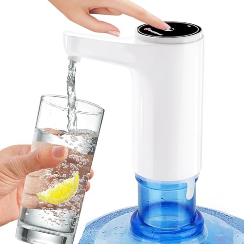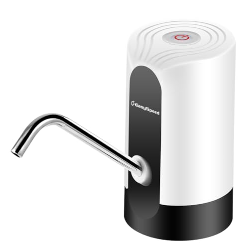 EASYSPEED Vattenflaskor Pump, 2 Adaptrar för Vattenkannor Varierar kaliber,Bärbar Vattendispenser,USB Uppladdningsbar Vattendispenser,För 1,5L, 3L, 5L, 7,5L, 8L, 11,3L, 15L, 18,9L,Vit