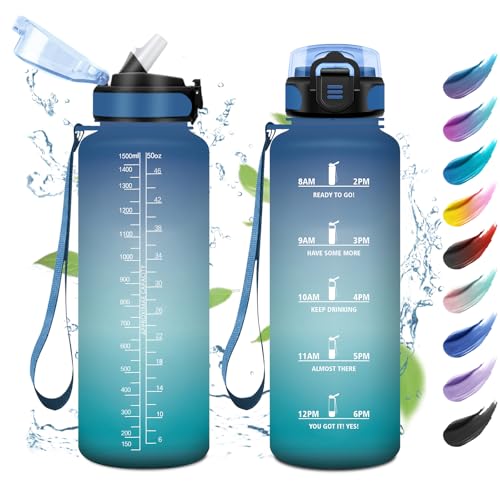 Gym vattenflaska 1,5 l, motiverande vattenflaska med sugrör, enkel rengöring, återanvändbar, sportflaska med tidsmärkning, vattenflaskor för arbete, cykling, vandring, gym