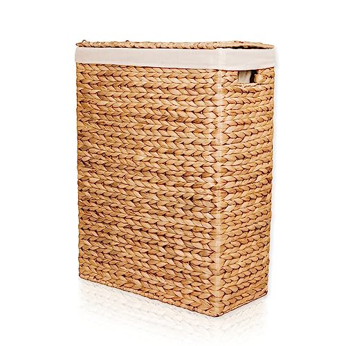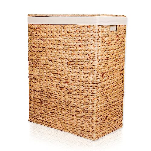 Seville Classics premium naturlig handvävd bärbar tvättkorg med bärhandtag, hushållsförvaring för kläder, linne, lakan, leksaker, naturlig vattenhyacint, rektangulär (2-pack)