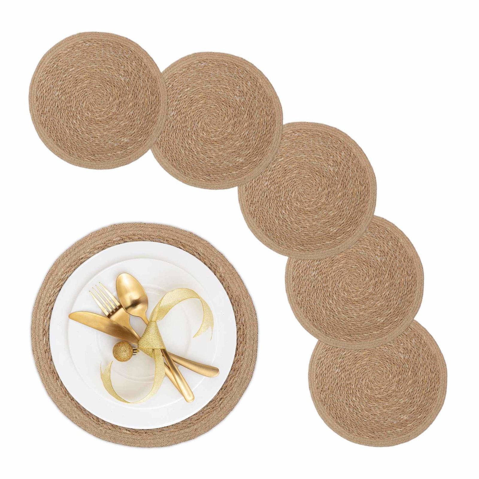 Runda bordstabletter för vattenhyacint, set om 10 – Naturlig vävd design