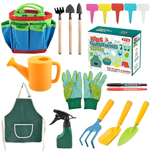 Booaee Trädgårdsverktyg för barn, 23-delat trädgårdsverktygsset barn med spade vattenkanna, barnträdgårdshandskar, barnförkläde, trädgårdsredskap, lekverktyg