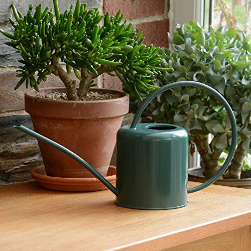 CKB LTD Mörkgrön 1,4 L inomhus vattenkanna – färgat galvaniserat pulverlackerat stål – för krukväxter, modern metalldesign med smal pip och högt handtag (mörkgrön)