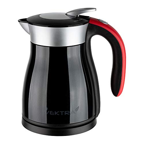 Vektra VEK-1201B vakuumisolerad vattenkokare 1,2 l rostfritt stål dubbelväggig EU-kontakt, termoskanna 2-i-1 varmhållningsfunktion BPA-fri trådlös säkerhetslås – svart/röd