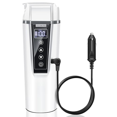 Bil resa elektrisk vattenkokare, DC 12 V/24 V bilvattenkokare, resevattenkokare, liten, minivattenkokare med LCD-display, bilvärmekopp i rostfritt stål med temperaturkontroll för lastbilar camping