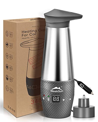 Vattenkokare för bil 12 V, med temperaturkontroll för resor camping, insida av rostfritt stål, snabb matlagning, automatisk avstängning, läckagesäker och torrkokningsskydd, 348 ml