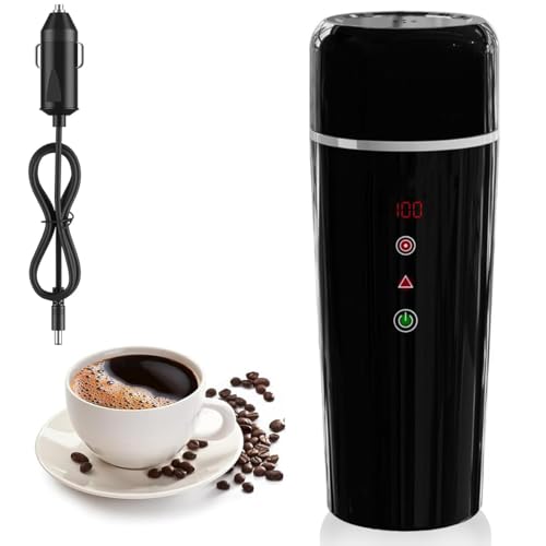GOMETY Bilvärmekopp: 1 st. BPA-fri elektrisk vattenkokare, bärbar för bil, för resor camping (svart 500 ml)