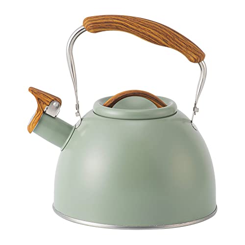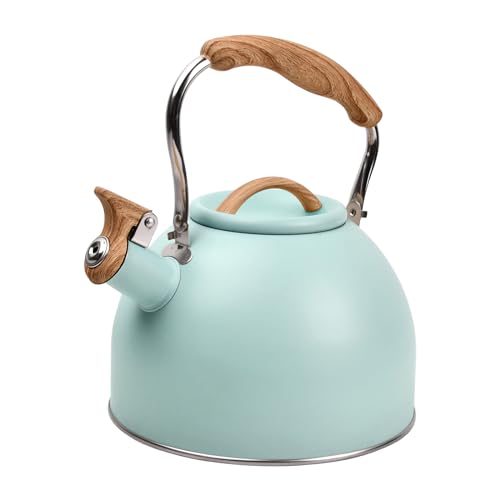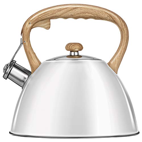 Wisebom Flöjtpanna, 3 l retro spis, tekanna, vattenkokare för induktion och gasspis, tekanna i rostfritt stål med träkorn handtag för alla kokplattor, vattenkokare induktion för te och kaffe