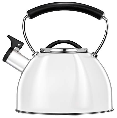 Kela Vattenkokare induktion 3 l, flöjtpanna, rostfritt stål, för alla typer av spisar, med säker öppning av piplocket med knapp, VARUS, tekanna, vit glänsande, H 21,5 cm/Ø 22 cm