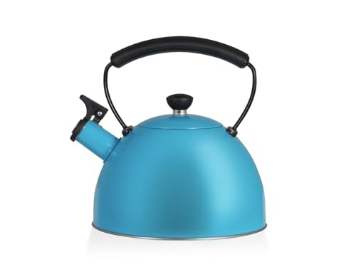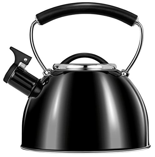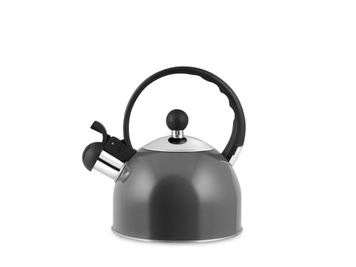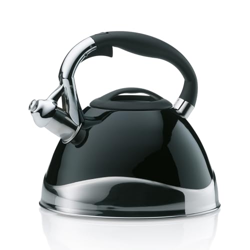 Forchetto Luna, vattenkokare, svart, 2,5 liter, emalj, induktion och gas, modern design, med visselpipa, nickelfri, antiallergisk, rostfritt stål