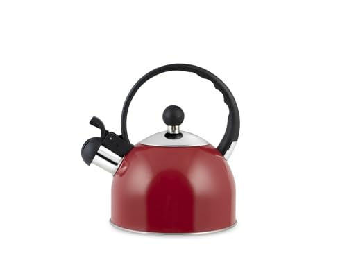 H&H 8841603 Vattenkokare med visselpipa, rostfritt stål, röd, 1,5Lt, Induktion, Rostfritt stål
