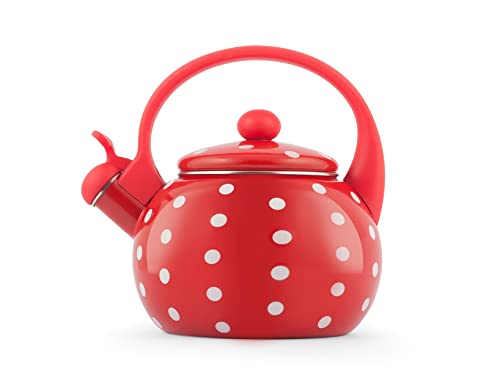 H&H Emaljerad vattenkokare, Röd och vit dekor till prickar, Lt 2, lämplig för induktion