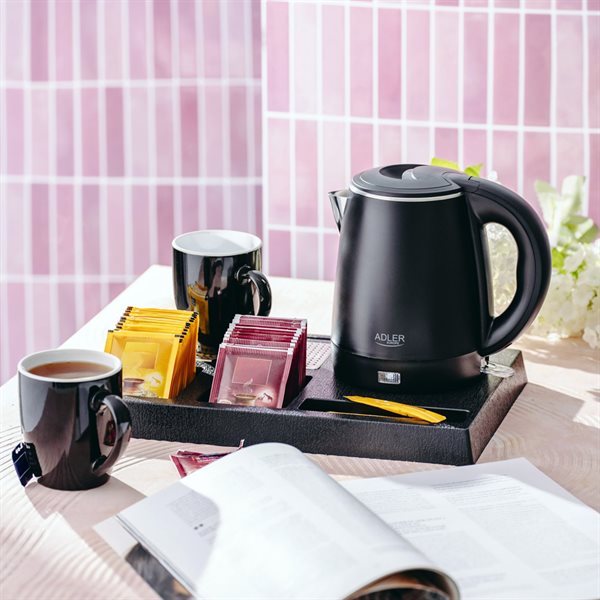 Vattenkokare 1L med välkomstbricka med koppar och fack