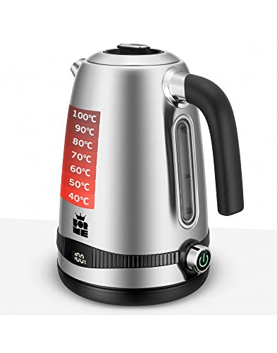 ForMe Vattenkokare Rostfritt Stål 1,7 L med Temperaturinställning Temperaturval 40-100°C LED Digital Temperaturdisplay I Temperaturjusterbar Vattenkokare I Tekanna Värmefunktion I BPA fri