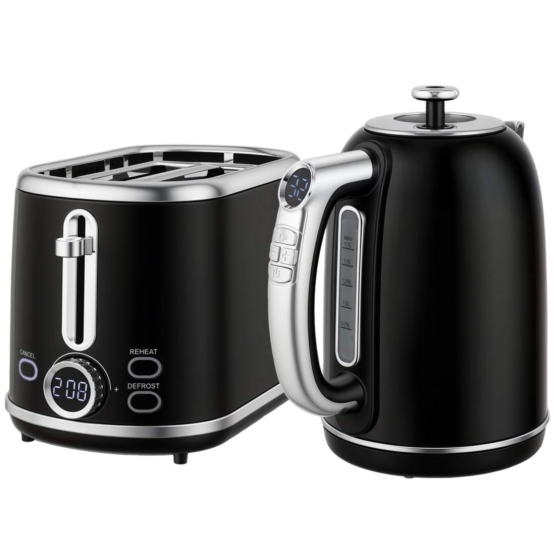 Vattenkokare och brödrost, 1,7 l, multiläge, LED-display, svart