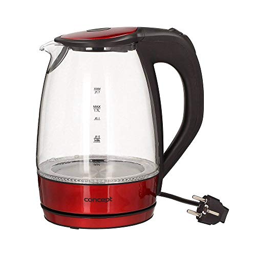 CONCEPT hushållsapparater rk4030re glas vattenkokare, LED-belysning, antikalkfilter, 1,7 l, 2200 W, glänsande röd/glas