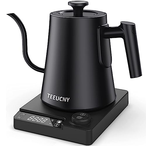 TEEUCNY Vattenkokare Elektrisk vattenkokare, Rostfritt stål Swan Neck vattenkokare, Vattenkokare med temperaturjustering för handgjort kaffe och te, LED-skärm, Håll dig varm funktion, 1200W, 1L