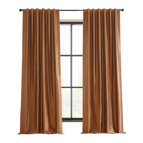 HPD Halvpris draperier falskt siden mörkläggningsgardiner 213 cm långa för sovrum och vardagsrum vintage texturerad mörkläggningsgardin (1 panel), 50 B x 84 L, koppar vattenkokare
