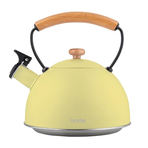 briebe Retro 2,3 l visslande induktionskokare, örttekokare, vattenkokare i rostfritt stål, alla typer av spisar, glaskeramik, gas, trähandtag kall känsla, vintage design, tekruka, pastellgul
