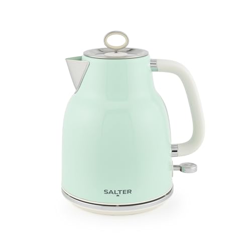 Salter Retro grön 1,7 L vattenkokare – 3 KW snabbkokning, 360° bas, avtagbart kalkfilter, trådlöst, vattennivåfönster, blått indikatorljus, koka torr sensor och automatisk avstängning, vintage design