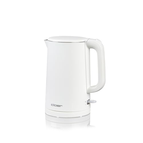 Cloer 4321 Vattenkokare 1,5 L, 1500 W, invändig behållare och lock i rostfritt stål, automatisk avstängning, överhettningsskydd, enhandsöppning, invändig vattennivåmarkering, vitt