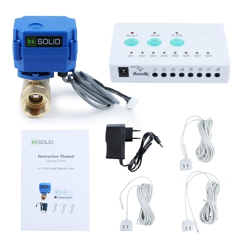 U.S. Solid Vattenläckagedetektor - Vattenlarm läckagedetekteringssystem med 1/2" automatisk avstängnings mässingsmotoriserad kulventil, kontrollenhet, 3 sensorer och ljudalarm